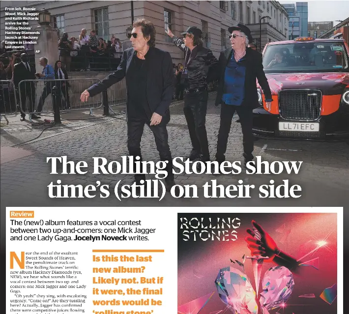 Near the end of the exultant Sweet Sounds of Heaven, the penultimate track on The Rolling Stones’ terrific new album Hackney Diamonds (yes, NEW), we hear what sounds like a vocal contest between two up-andcomers: one Mick Jagger and one Lady Gaga.