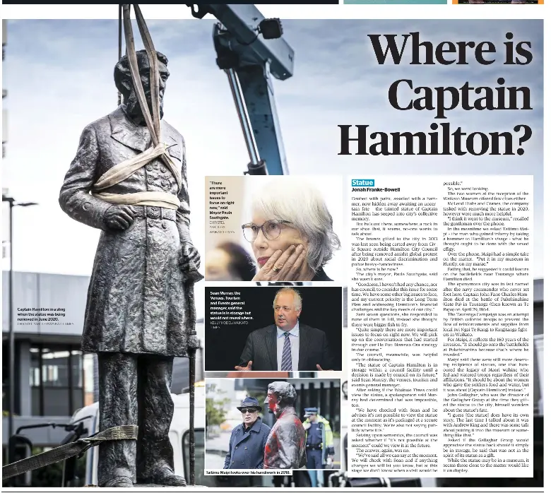 “The statue of Captain Hamilton is in storage within a council facility until a decision is made by council on its future,” said Sean Murray, the venues, tourism and events general manager.